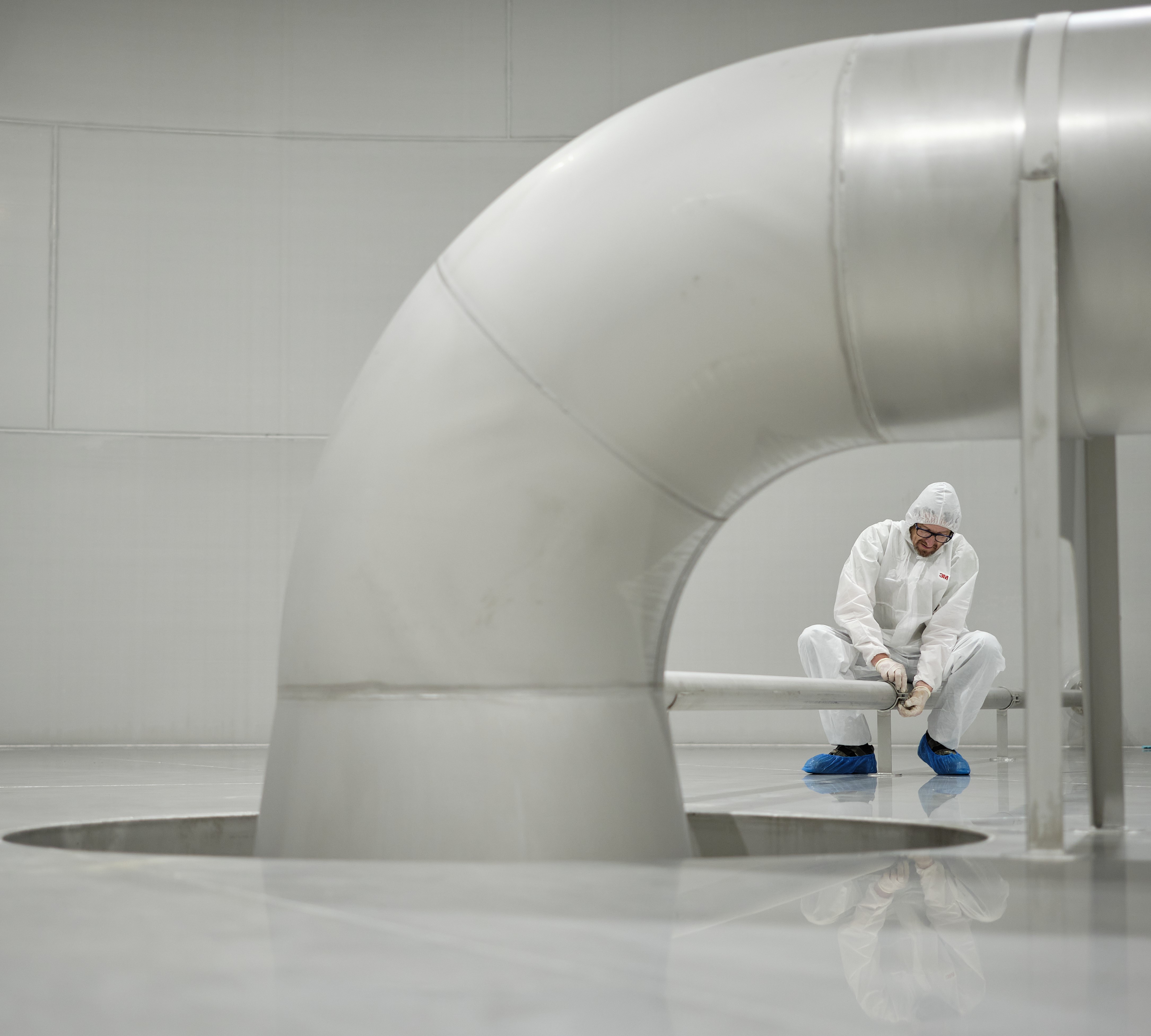 Leveret inkl. Stålramme for fundament, indvendig rørarrangement DN800 for udpumpningskapacitet på 1800 m3/t.