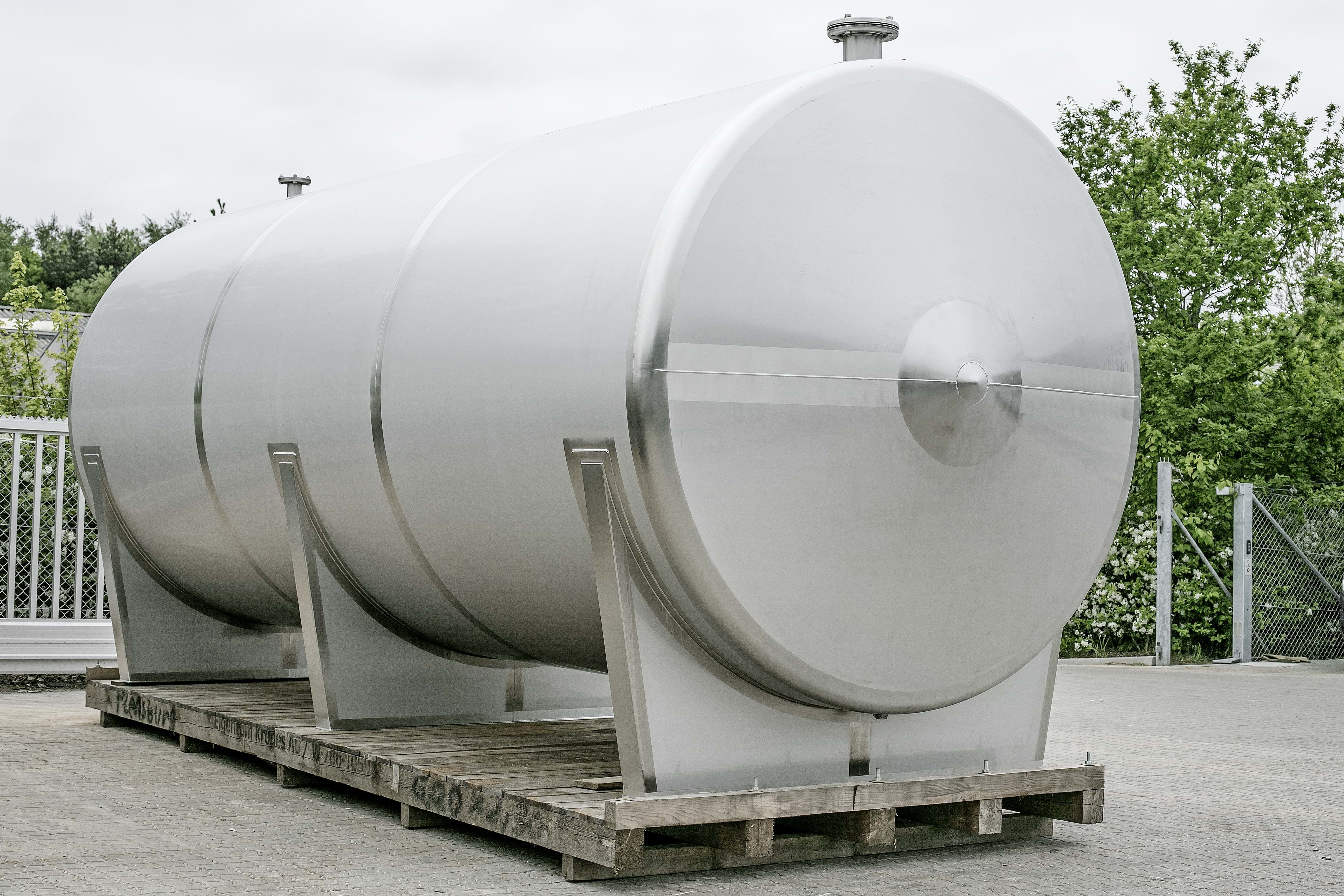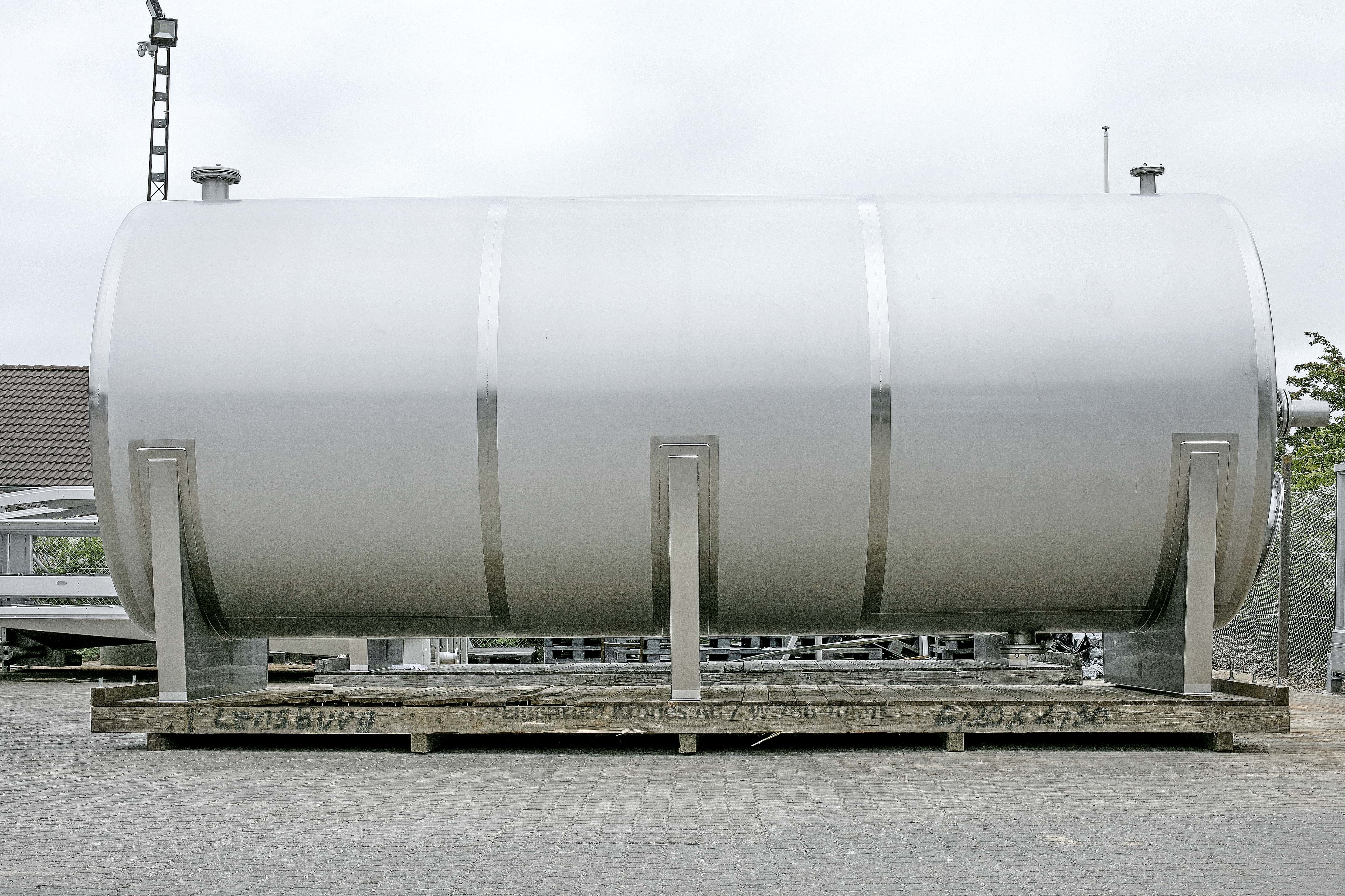 2 styk rustfri vandretliggende fabriksbygget rentvandsbeholder til Bornholm vandforsyning.