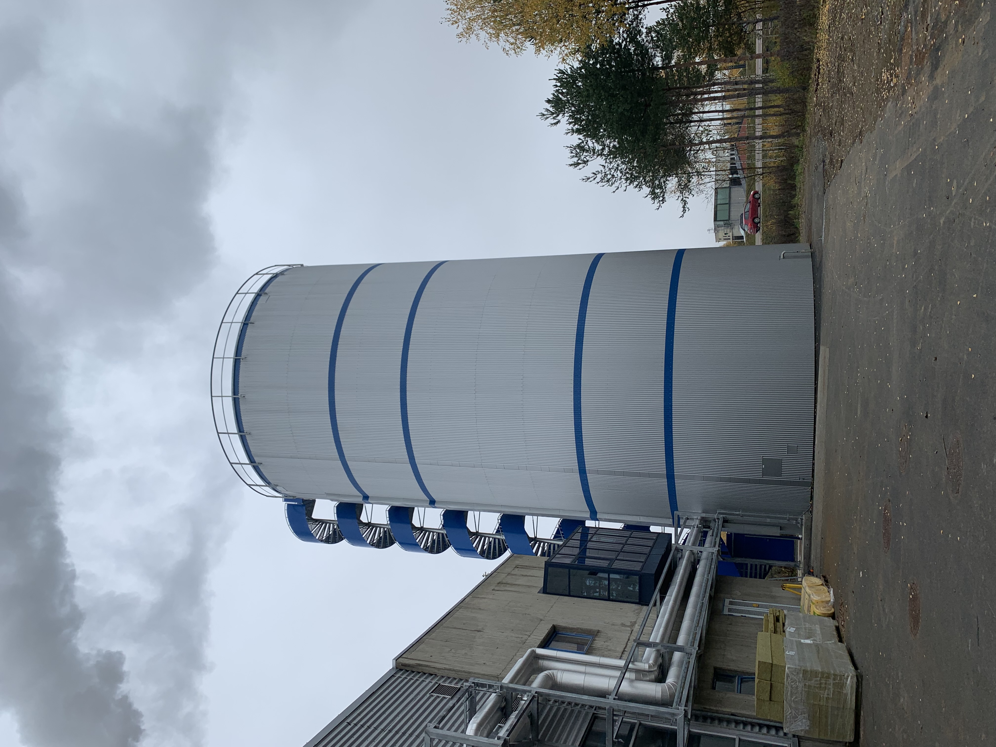 Nybyg af 1 stk. svejst ståltank i sort stål til oplag af fjernvarme vand. Tanken er beklædt med 500 mm udvendig tankisolering
