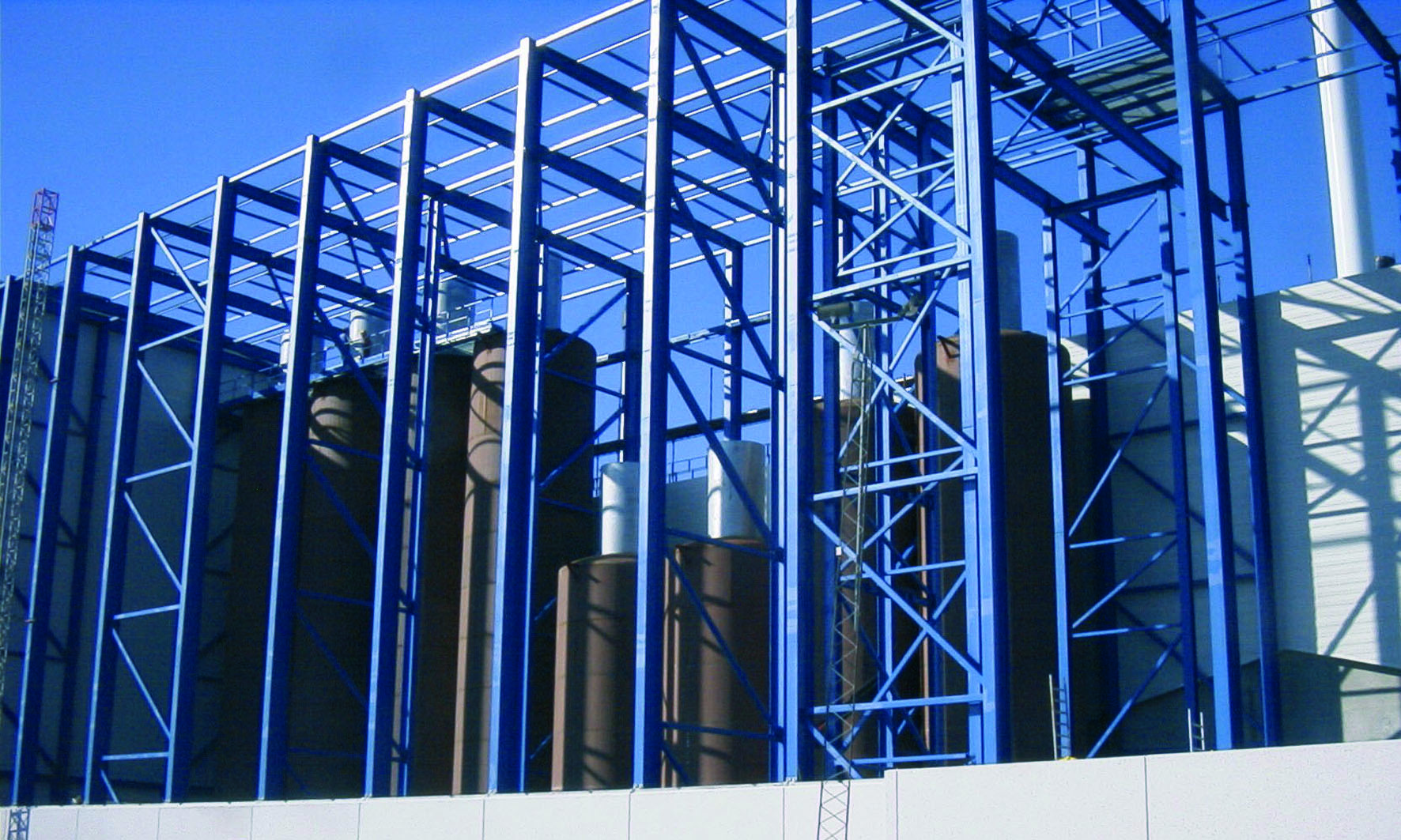 The tank installation was erected on site simultaneously with the erection of the surrounding building.
