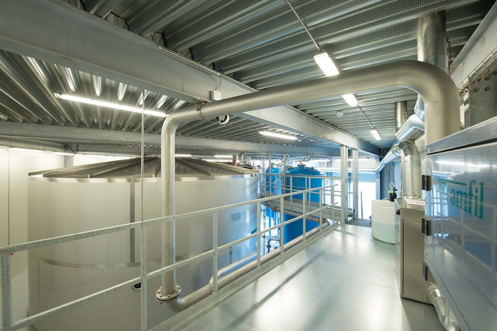 Delivery of 2 pc. stainless steel water tanks. Built inside a new water treatment process plant.